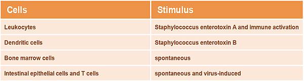 許多微生物的刺激會促使免疫系統生成TSH,特別是細菌表面的脂多醣體(lipopolysaccharide)會促使免疫細胞大量分泌TSH,這個現象揭示著中醫所論述的“外感”確實會影響甲狀腺的正常功能。除了周邊成熟的免疫細胞會製造TSH外,骨髓造血細胞(hematopoiesis)中的部分細胞也會分泌TSH,特別是帶有CD11b+的單核球、巨噬細胞及顆粒細胞。[6]骨髓中蘊藏幹細胞,可依照身體需求分化為不同的細胞,協助人體面對各種壓力,這種功能近似於中醫的“衝脈”,《黃帝內經》稱「衝脈者,五臟六腑之海也,五臟六腑皆稟氣焉。」現今許多研究證實TSH除了促使甲狀腺素分泌外,同時也是免疫系統中的調節因子,會促使骨髓中的幹細胞,分化為不同的免疫細胞,這在中醫上也解釋了為什麼自體免疫性甲狀炎可能造成不孕或重複性流產,只要伏邪病位深及衝脈,就可能造成生殖困境。